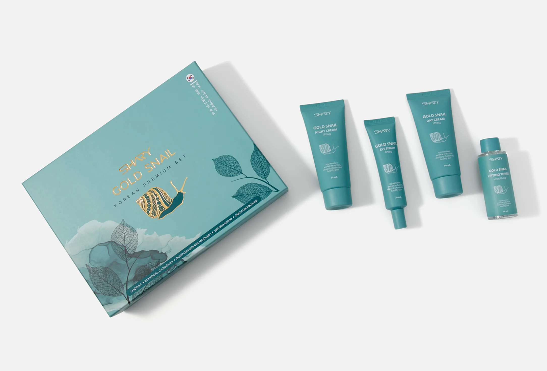 Омолаживающий корейский premium-набор Shary для лифтинга и разглаживания кожи лица GOLD SNAIL - это классический корейский комплекс beauty-средств качества premium, разработанный специально для ежедневного ухода за зрелой кожей лица.