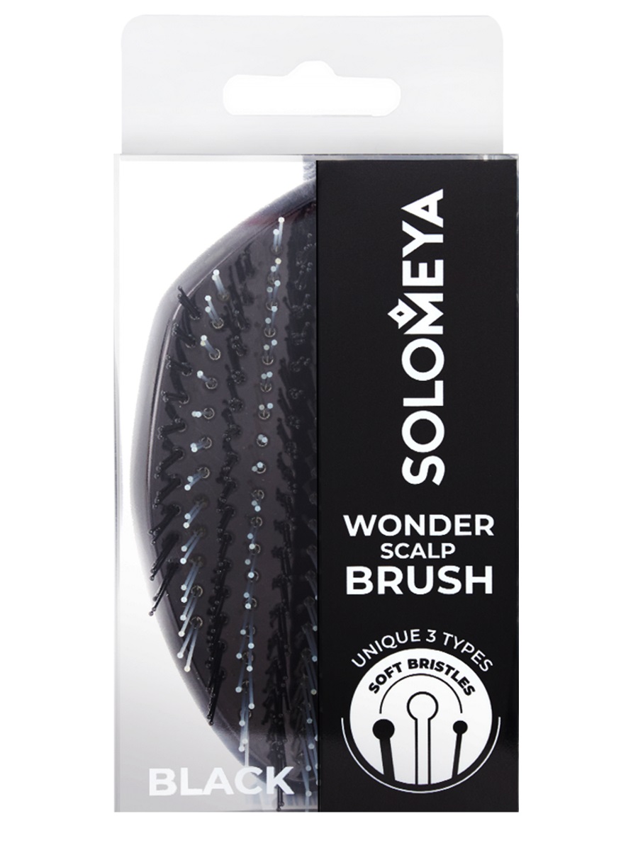 [Solomeya] Мини-расческа для распутывания массажа и мытья кожи головы ЧЕРНАЯ Wonder Scalp Brush Black Mini, 1шт