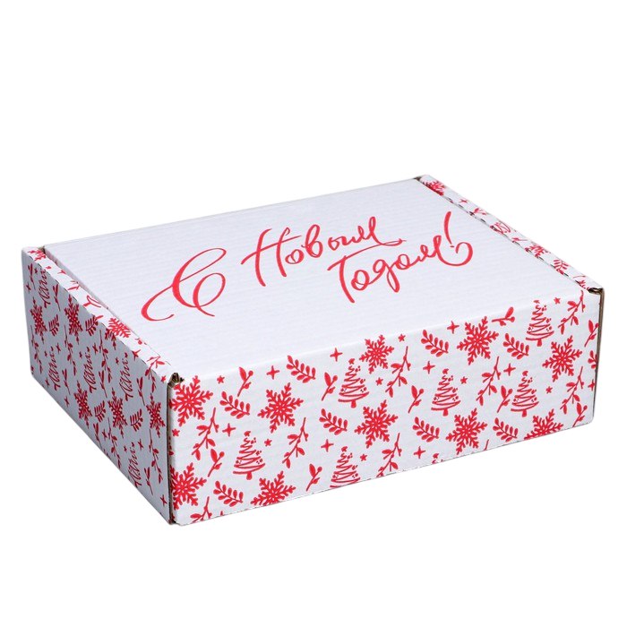 Коробка новогодняя складная белая «С Новым годом», 27×21×9см